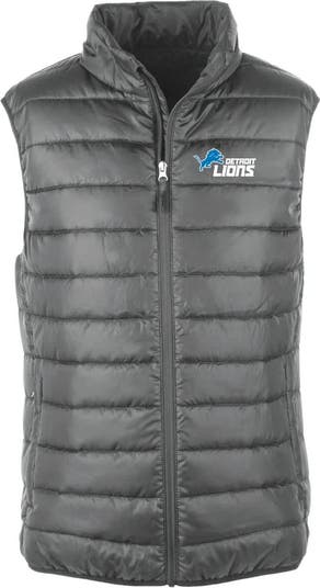Show your Detroit Lions pride with this Alberta Full-Zip Puffer Vest from Dunbrooke. The water-resistant design ensures you stay dry and comfortable, making it perfect for those unpredictable weather days. The embroidered team logo proudly displays your Detroit Lions pride, making it a stylish and functional addition to any fan's wardrobe.