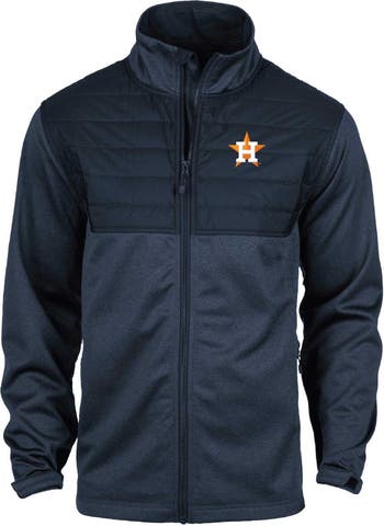 Dunbrooke brings Houston Astros fans the pathfinder of outerwear with this Explorer jacket. It's crafted to repel water and keeps you warm thanks to cozy fleece lining. The contrasting design of heathered fabric and a solid quilted pattern adds visual appeal to this Houston Astros full-zip.