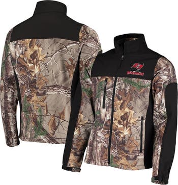 Whether you're outdoors or at the game, you sport your devotion to the Tampa Bay Buccaneers. Be ready, rain or shine, with this Hunter Softshell full-zip jacket. With a camo pattern and crisp Tampa Bay Buccaneers graphics, you'll turn heads and show off as the top fan.