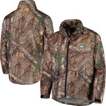 Stay dry and show your Philadelphia Eagles pride with this Dunbrooke Realtree Camo Circle Sportsman Waterproof Packable Full-Zip Jacket. This lightweight jacket features a mesh back yoke panel for breathability and a hood with four metal grommets and an adjustable drawcord. The embroidered Philadelphia Eagles graphics and zipper garage on the main zipper add a touch of team spirit. Whether you're tailgating at Lincoln Financial Field or watching the game at home, this jacket will keep you comfortable and show off your Eagles pride.