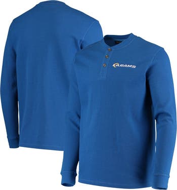 The Men's Dunbrooke Royal Los Angeles Rams Logo Maverick Thermal Henley Long Sleeve T-Shirt is the perfect way to show your unwavering support for the Los Angeles Rams. With its embroidered Rams logo and thermal fabric, this shirt will keep you warm and comfortable while you cheer on your team. The henley neckline and three-button placket add a touch of style, making this shirt perfect for any occasion. Whether you're at the game or just hanging out, this shirt is sure to show your Rams pride.