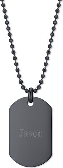 An engravable dog tag pendant lets you customize a refined chain necklace that's sleek and timeless.