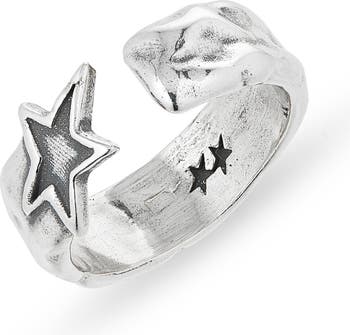 Bring modern drama to your stack with this engraved open band ring crafted from sterling silver with an oxidized finish.