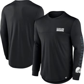 Gear up for game day with this Cleveland Browns Blackout Long Sleeve T-Shirt from Fanatics. This shirt features a bold team wordmark printed down the left sleeve, with the iconic Cleveland Browns logo emblazoned just below for a powerful statement. Made from lightweight polyester, it provides a comfortable feel for all-day wear.