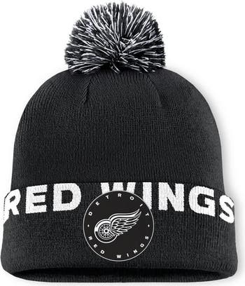 Men's Fanatics Black Detroit Red Wings Fundamental High Stick Cuffed Knit Hat with Pom