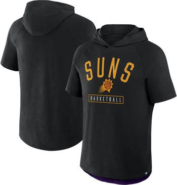Stay at the ideal temperature in this Phoenix Suns Pass Legend Raglan Hoodie T-Shirt by Fanatics. The hood lets you adjust coverage as needed, while raglan sleeves allow for a full range of motion. Made from soft, breathable cotton fabric, this Phoenix Suns tee keeps you comfortable during changing weather.