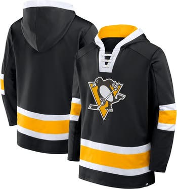 Stay warm and cozy while representing your favorite hockey team in this Pittsburgh Penguins Inside Line Fleece Pullover Hoodie from Fanatics. It features mesh inserts at the sleeves, hem, and collar for added breathability, keeping you comfortable whether you're cheering from the stands or supporting your team around town. The lace-up neckline inspired by on-ice jerseys adds a touch of authenticity, while the team logo patch displays your Pittsburgh Penguins pride.