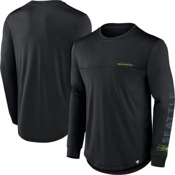 Gear up for game day with this Seattle Seahawks Blackout Long Sleeve T-Shirt from Fanatics. This shirt features a bold team wordmark printed down the left sleeve, with the iconic Seattle Seahawks logo emblazoned just below for a powerful statement. Made from lightweight polyester, it provides a comfortable feel for all-day wear.