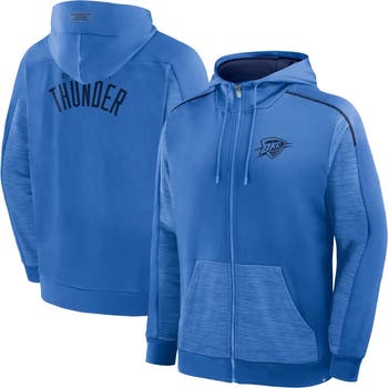 Stay warm and comfy while wearing this Oklahoma City Thunder Back Door Cut Play Defender Full-Zip Hoodie by Fanatics. Fleece fabric provides an extra layer of cozy warmth on colder days. The classic fit allows for comfortable movement and layering in this Oklahoma City Thunder hoodie.