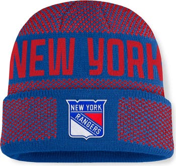 Stay prepared for cold weather with this New York Rangers Fundamentals Shelter Cuffed Knit Hat by Fanatics. The midweight yarn in a bird's eye stitch provides cozy warmth and a distinctive look. An embroidered team logo and jacquard details ensure everybody knows you back the New York Rangers.