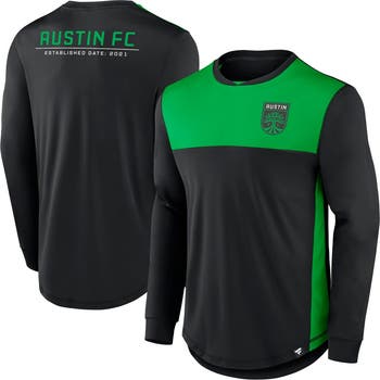 Represent your Austin FC pride with the Men's Fanatics Branded Black Austin FC Mid Goal Long Sleeve T-Shirt. Crafted from soft cotton, this long sleeve tee features a crew neck for a comfortable fit. The bold Austin FC graphics proudly display your allegiance, making it the perfect choice for game days or any day you want to show your support for the Black and Verde.
