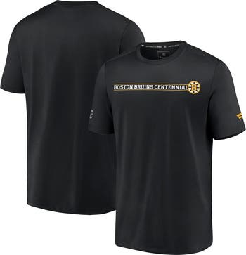 The Men's Fanatics Branded Black Boston Bruins Authentic Pro Centennial Banner T-Shirt is a must-have for any loyal Boston Bruins fan. This stylish tee features heat-sealed graphics that proudly display the Bruins' iconic logo and a mesh shoulder inset for added breathability. Whether you're cheering from the stands or simply showing your support, this t-shirt is the perfect way to represent the Boston Bruins in style.
