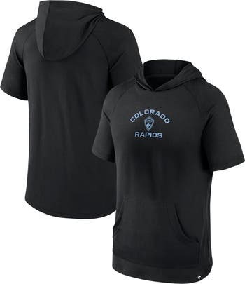 The Men's Fanatics Branded Black Colorado Rapids Match Raglan Short Sleeve Pullover Hoodie is the perfect way to show your support for the Colorado Rapids. Made from lightweight polyester, this hoodie is ideal for mild temperatures and features screen-printed graphics that proudly display your team pride. The raglan sleeves and front pouch pocket add a touch of style and functionality, making this hoodie a must-have for any Colorado Rapids fan.