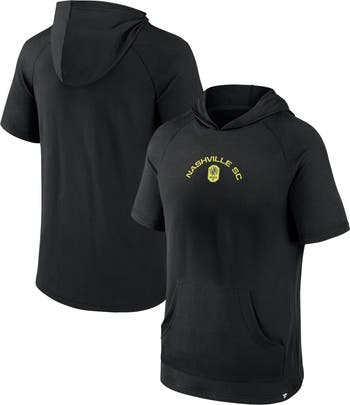 The Men's Fanatics Branded Black Nashville SC Match Raglan Short Sleeve Pullover Hoodie is the perfect way to show your support for the Nashville SC. Made from lightweight polyester, this hoodie is ideal for mild temperatures and features screen-printed graphics and raglan sleeves for a stylish look. The front pouch pocket provides convenient storage for your essentials, while the Nashville SC logo proudly displayed on the chest showcases your team spirit.