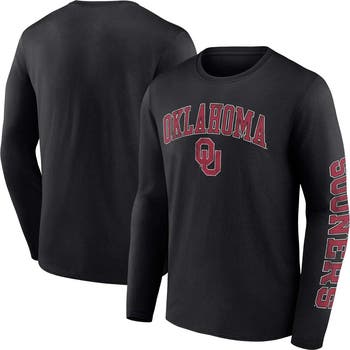 The Men's Fanatics Branded Black Oklahoma Sooners Distressed Arch Over Logo Long Sleeve T-Shirt is a must-have for any devoted Oklahoma Sooners fan. Its distressed screen print graphics give it a vintage look that will make you stand out from the crowd. Made from soft cotton, this long sleeve t-shirt will keep you comfortable all day long, whether you're cheering on the Sooners at the game or just relaxing at home. Show your Oklahoma Sooners pride with this stylish and comfortable t-shirt.