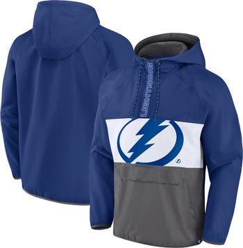 Get ready to cheer on the Tampa Bay Lightning by gearing up in this Flagrant Foul Anorak half-zip jacket from Fanatics Branded. It features three layers of recognizable team colors, as well as your beloved franchise's iconic logo and name going across the front. The adjustable hood and raglan sleeves work together to give you a fit and feel that lets you exhibit your unwavering Tampa Bay Lightning fandom comfortably.