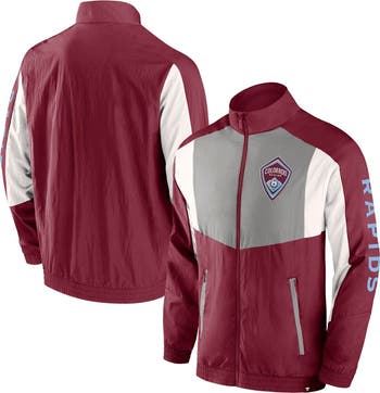 Defend against inclement conditions in this Colorado Rapids Net Goal track jacket from Fanatics Branded. Its full-zip design features an elastic hem and cuffs to block out the elements, zippered pockets to shield items and raglan sleeves for more flexible movement. Colorado Rapids graphics on the chest and left sleeve keep your club pride in view.