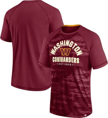 The Men's Fanatics Branded Burgundy Washington Commanders Hail Mary Raglan T-Shirt is a must-have for any devoted Washington Commanders fan. Its raglan sleeves and sublimated camo pattern give it a unique and stylish look, while the screen print graphics proudly display your team pride. The flatlock stitching and woven brand tag ensure durability and authenticity, making this t-shirt a perfect way to show your support for the Washington Commanders.