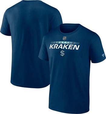 The Men's Fanatics Branded Deep Sea Blue Seattle Kraken Authentic Pro Team Core Collection Prime T-shirt is the perfect way to show unwavering support for the Seattle Kraken. Made from soft and durable cotton, this crew neck t-shirt proudly displays the official Seattle Kraken logo, showcasing your allegiance to the team. Whether cheering from the stands or expressing Kraken pride, this t-shirt is a must-have for any true fan.