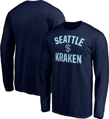 Celebrate your unwavering Seattle Kraken fandom with the Men's Fanatics Branded Deep Sea Blue Seattle Kraken Big & Tall Victory Arch Long Sleeve T-Shirt. Crafted from soft cotton, this long-sleeve tee features bold Seattle Kraken graphics that proudly display your allegiance. The roomy design ensures a comfortable fit, perfect for cheering on the Kraken from the stands or anywhere you go. Show your support for the Seattle Kraken and embrace the spirit of the NHL with this stylish and comfortable long-sleeve tee.