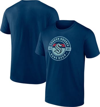 The Men's Fanatics Branded Deep Sea Blue Seattle Kraken Local T-Shirt is the perfect way to show your support for the Seattle Kraken. Made from soft cotton, this shirt features screen-printed graphics that proudly display the Kraken logo. The crew neck design makes it easy to wear, and the deep sea blue color is sure to turn heads. Whether you're cheering on the Kraken at the rink or just showing your team spirit, this shirt is a must-have for any fan.