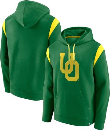 The Men's Fanatics Branded Green Oregon Ducks Gym Rat Pullover Hoodie is the perfect way to show your support for the Oregon Ducks. Made from durable polyester, this midweight hoodie is ideal for moderate temperatures. Screen-printed graphics proudly display the Oregon Ducks logo, while the front pouch pocket provides a convenient place to store essentials. Whether you're cheering on the Ducks at the game or relaxing at home, this hoodie will keep you comfortable and stylish.