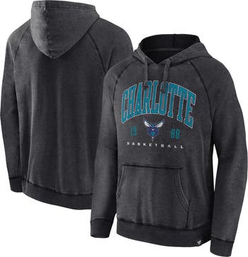 The Men's Fanatics Branded Heather Charcoal Charlotte Hornets Foul Trouble Snow Wash Raglan Pullover Hoodie is the perfect way to show your support for the Charlotte Hornets. Made from a soft cotton and polyester blend, this midweight hoodie features a French terry lining for added warmth and comfort. Distressed screen print graphics give it a vintage look, while the washed fabric pattern adds a unique touch. Whether you're cheering on the Hornets from the stands or relaxing at home, this hoodie is sure to keep you comfortable and stylish.