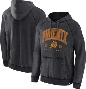 The Men's Fanatics Branded Heather Charcoal Phoenix Suns Foul Trouble Snow Wash Raglan Pullover Hoodie is the ultimate way to show unwavering support for the Phoenix Suns. This midweight hoodie features a cozy French terry lining, keeping you warm during chilly games. Distressed screen print graphics add vintage style, while the washed fabric pattern gives it a unique look. Whether cheering from the stands or relaxing at home, this hoodie is sure to become a favorite.