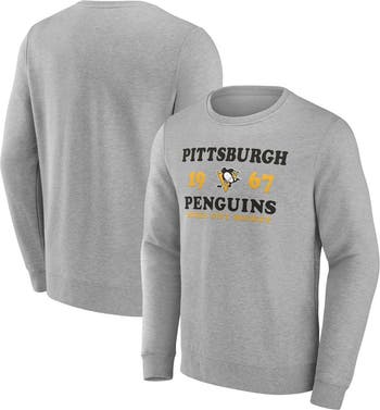 The Men's Fanatics Branded Heather Charcoal Pittsburgh Penguins Fierce Competitor Pullover Sweatshirt is the perfect way to show unwavering support for the Pittsburgh Penguins. Made from a comfortable cotton and polyester blend, this midweight sweatshirt features rib-knit cuffs, collar, and hem for a secure and comfortable fit. Screen-printed graphics proudly display the Pittsburgh Penguins logo, making team allegiance clear. Whether cheering from the stands or showing support, this sweatshirt represents the Pittsburgh Penguins in style.