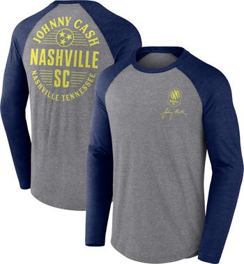 Men's Fanatics Branded Heather Gray Nashville SC x Johnny Cash Lines Tri-Blend Raglan Long Sleeve T-Shirt
