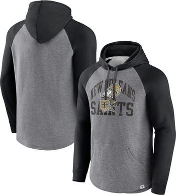 The Men's Fanatics Branded Heather Gray New Orleans Saints Favorite Arch Raglan Pullover Hoodie is the perfect way to show your unwavering support for the New Orleans Saints. Crafted from soft and durable materials, this midweight hoodie is ideal for moderate temperatures. The raglan sleeves and rounded hem provide a comfortable and stylish fit, while the screen-printed graphics proudly display your Saints pride. Whether you're cheering from the stands or simply showing your support, this hoodie is a must-have for any true Saints fan.