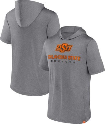 The Men's Fanatics Branded Heather Gray Oklahoma State Cowboys Modern Stack Hoodie T-Shirt is the perfect way to show your support for the Oklahoma State Cowboys. Made from soft and durable polyester, this hoodie features a front pouch pocket for convenience and a pullover design for easy wear. The bold Oklahoma State Cowboys graphics on the front and back proudly display your team spirit, making this hoodie a must-have for any Cowboys fan.
