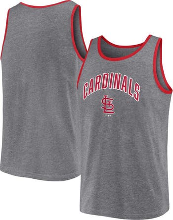 The Men's Fanatics Branded Heather Gray St. Louis Cardinals Primary Tank Top is the perfect way to show unwavering support for the Cardinals. Made from a comfortable cotton and polyester blend, this tank top features heat-sealed graphics that proudly display the Cardinals logo. The scoop neck and sleeveless design make it ideal for warm weather, while the durable construction ensures it lasts through many seasons of cheering on your favorite team. Whether at the game or hanging out, this tank top is a must-have for any Cardinals fan.