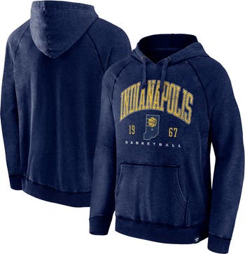 The Men's Fanatics Branded Heather Navy Indiana Pacers Foul Trouble Snow Wash Raglan Pullover Hoodie is the perfect way to show your support for the Indiana Pacers. Made from a soft cotton and polyester blend, this midweight hoodie features a French terry lining for added warmth and comfort. The distressed screen print graphics give it a vintage look, while the washed fabric pattern adds a unique touch. Whether you're cheering on the Pacers from the stands or just relaxing at home, this hoodie is sure to keep you comfortable and stylish.