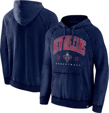 The Men's Fanatics Branded Heather Navy New Orleans Pelicans Foul Trouble Snow Wash Raglan Pullover Hoodie is the perfect way to show your support for the New Orleans Pelicans. Made from a soft cotton and polyester blend, this midweight hoodie features a French terry lining for added warmth and comfort. The distressed screen print graphics give it a vintage look, while the washed fabric pattern adds a unique touch. Whether you're cheering on the Pelicans at the game or just relaxing at home, this hoodie is sure to keep you comfortable and stylish.