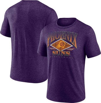 The Men's Fanatics Branded Heather Purple Phoenix Suns True Classics Power Phase Tri-Blend T-Shirt is the perfect way to show your support for the Phoenix Suns. Made from a comfortable polyester, cotton, and rayon blend, this t-shirt features distressed screen print graphics that give it a vintage look. The crew neck and short sleeves make it perfect for any casual occasion, and the Phoenix Suns logo on the front shows your team spirit. Whether you're cheering on the Suns at the game or just relaxing at home, this t-shirt is a must-have for any fan.