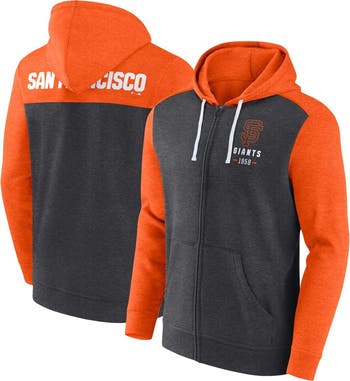 The Men's Fanatics Branded Heathered Charcoal/Heathered Orange San Francisco Giants Blown Away Full-Zip Hoodie is the perfect way to show your support for the San Francisco Giants. This lightweight hoodie is made of a soft cotton and polyester blend, making it comfortable to wear all day long. The full-zip design makes it easy to get on and off, and the hood with drawstring will keep you warm on chilly days. The screen print graphics feature the San Francisco Giants logo, so you can show your team spirit wherever you go.