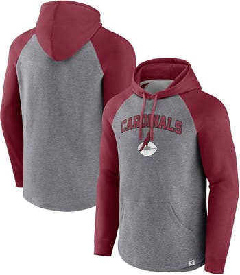 The Men's Fanatics Branded Heathered Gray/Cardinal Arizona Cardinals By Design Raglan Pullover Hoodie is the perfect way to show your support for the Arizona Cardinals. Made from a comfortable cotton and polyester blend, this midweight hoodie features embroidered fabric appliques and a front pouch pocket for added functionality. The hood with drawstring and raglan sleeves provide a comfortable fit, while the raised woven fabric appliques and rounded hem add a touch of style. Whether you're cheering on the Cardinals at the stadium or just relaxing at home, this hoodie is sure to keep you warm and comfortable.