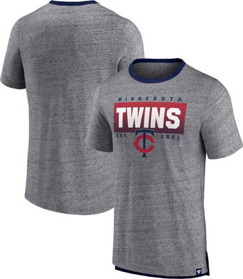 The Men's Fanatics Branded Heathered Gray Minnesota Twins Iconic Team Element Speckled Ringer T-Shirt is a must-have for any true Minnesota Twins fan. This stylish tee features a classic crew neck, droptail hem with side splits, and flatlock stitching for added durability. The screen print graphics proudly display the iconic Minnesota Twins logo, making it the perfect way to show your support for your favorite team. Whether you're cheering them on at the stadium or just relaxing at home, this t-shirt is sure to become a favorite.