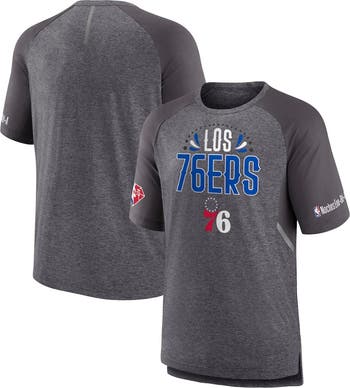 The Men's Fanatics Branded Heathered Gray Philadelphia 76ers 2022 Noches Ene-Be-A Core Shooting Raglan T-Shirt is the perfect way to show your support for the Philadelphia 76ers. This stylish and comfortable shirt features a raglan sleeve design, heat-sealed graphics, and a droptail hem. Made from durable polyester, this shirt is perfect for any Philadelphia 76ers fan.