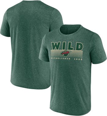 The Men's Fanatics Branded Heathered Green Minnesota Wild Prodigy Performance T-shirt is the perfect way to show your support for the Minnesota Wild. Made from breathable polyester, this T-shirt features screen-printed graphics that proudly display the Wild logo. Whether you're cheering from the stands or just hanging out, this T-shirt will keep you comfortable and stylish.