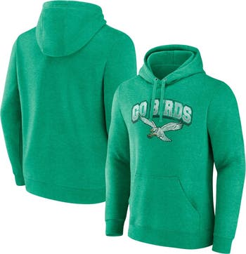 The Men's Fanatics Branded Kelly Green Philadelphia Eagles Gridiron Classics Go Birds Vintage Arch Pullover Hoodie is a must-have for any devoted Philadelphia Eagles fan. This midweight hoodie features distressed screen print graphics that showcase your unwavering support for the Eagles. The fleece lining provides warmth and comfort, making it perfect for chilly game days. Whether you're cheering from the stands or simply showing your Eagles pride, this hoodie is the perfect way to represent your team in style.