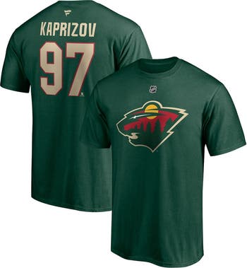 You've been following Kirill Kaprizov since he came into the league, and you like what you see. Support him in his endeavors with this Minnesota Wild Authentic Stack Name and Number T-shirt from Fanatics Branded. The detailed graphics look just like the jersey he wears every game. There's no doubt you'll look and feel like the #1 Minnesota Wild fan when you wear this comfy tee.