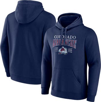 The Men's Fanatics Branded Navy Colorado Avalanche Big & Tall Dynasty Pullover Hoodie is the ultimate way to show unwavering support for the Colorado Avalanche. This midweight hoodie features distressed screen print graphics that proudly display the Avalanche logo, a must-have for any true fan. The cozy fleece lining and front pouch pocket provide warmth and comfort, while the drawstring hood ensures a snug fit. Whether cheering from the stands or showing Avalanche pride, this hoodie is the perfect way to represent your team in style.