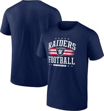 Celebrate your unwavering Las Vegas Raiders fandom with the Men's Fanatics Branded Navy Las Vegas Raiders Americana T-shirt. This classic crew neck tee features distressed screen print graphics that proudly display your allegiance to the Las Vegas Raiders. Made from soft cotton, this comfortable and durable shirt is perfect for game days or any day you want to show your support for the Las Vegas Raiders.