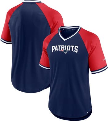 The Men's Fanatics Branded Navy/Red New England Patriots Second Wind Raglan V-Neck T-Shirt is the perfect way to show unwavering support for the New England Patriots. With heat-sealed graphics and mesh fabric, this shirt is stylish and comfortable. Raglan sleeves and a rounded droptail hem add flair, while cotton material ensures a soft, breathable feel. Whether cheering at the stadium or relaxing at home, this shirt is sure to become a favorite.