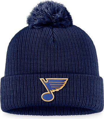 Keep your head warm and your St. Louis Blues fandom top of mind anytime you sport this Core Primary Logo cuffed knit hat with pom from Fanatics Branded. This vibrant lid features a fun pom on top and a bold St. Louis Blues logo embroidered on the cuff. Pair this knit hat with your favorite hoodie or jacket to enjoy a full-fledged look that leaves no doubt who you're rooting for on game day.