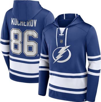 Draw the attention of fellow fans everywhere you go as you celebrate your favorite Tampa Bay Lightning player in this Nikita Kucherov Name & Number hoodie from Fanatics Branded. It features a unique lace-up design to mirror the jerseys the Tampa Bay Lightning wear on the ice. Paired with undeniable graphics, your game day attire will experience a huge upgrade when you add this extra layer.