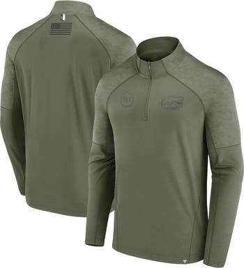 Men's Fanatics Branded Olive Florida Gators OHT Military Appreciation Titan Raglan Quarter-Zip Jacket
