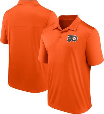 The Men's Fanatics Branded Orange Philadelphia Flyers Left Side Block Polo is a stylish and comfortable choice for any Flyers fan. Its heat-sealed graphics and hem with side splits add a touch of sophistication, while the three-button placket ensures a secure fit. Made from durable polyester, this polo is perfect for showing your support for the Philadelphia Flyers both on and off the ice.